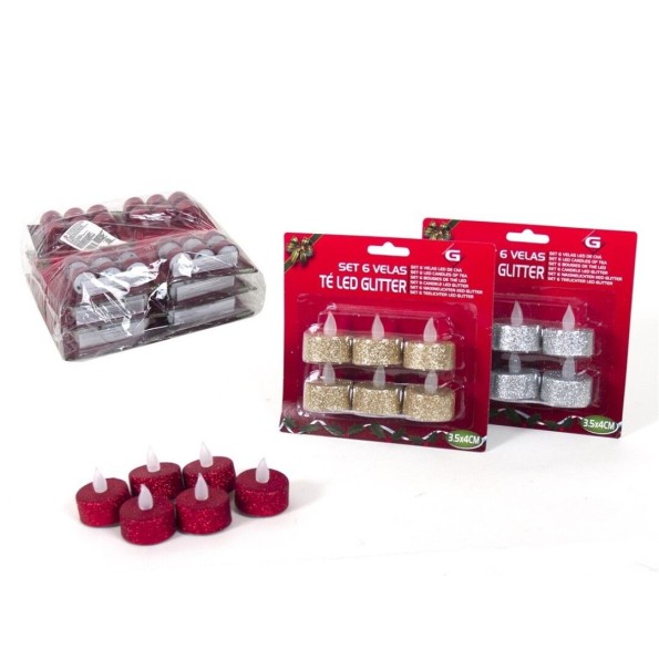 8430540577946SET 6 VELAS TÉ LED GLITTER - 3.5X4CM 3ST