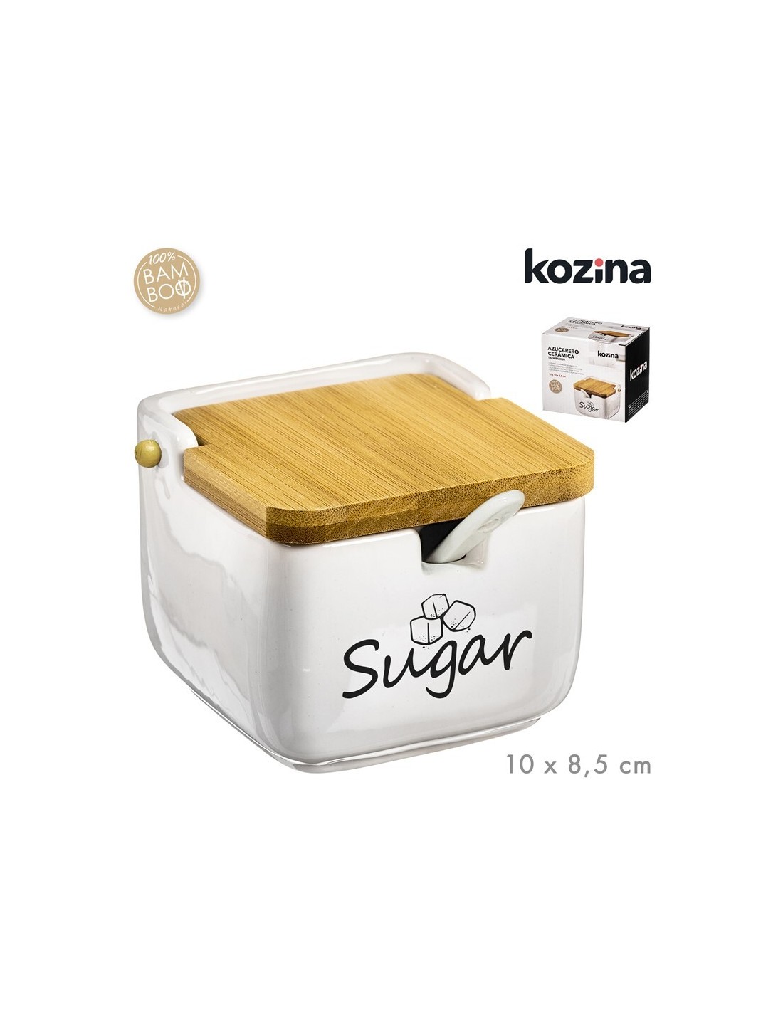 AZUCARERO CERAMICA TAPA BAMBU SUGAR 10x10 cm