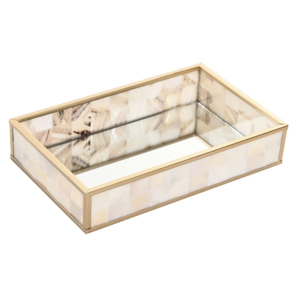 BANDEJA DECORACION CRISTAL METAL 21X13X4 NACAR