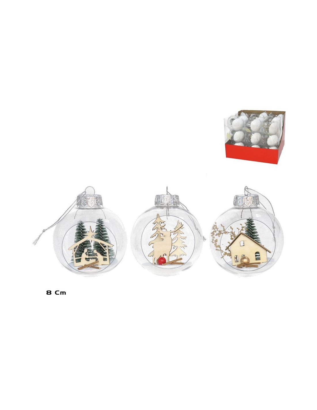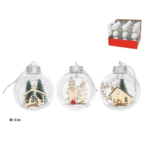 BOLA NAVIDAD TRANSPARENTE ABIERTA 8CM 3S