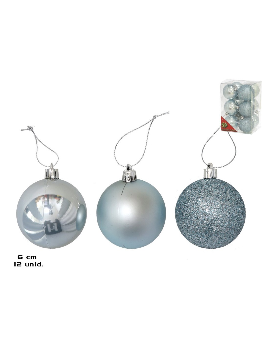 BOLA NAVIDAD X12 AZUL CLARO 6CM 3STD