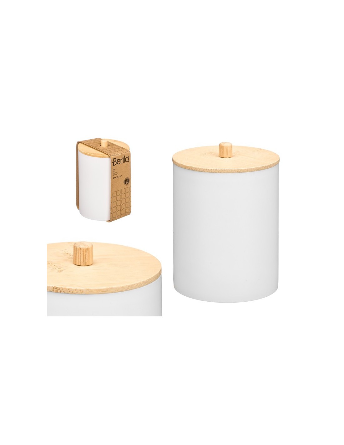 BOTE PLASTICO TAPA BAMBU BLANCO