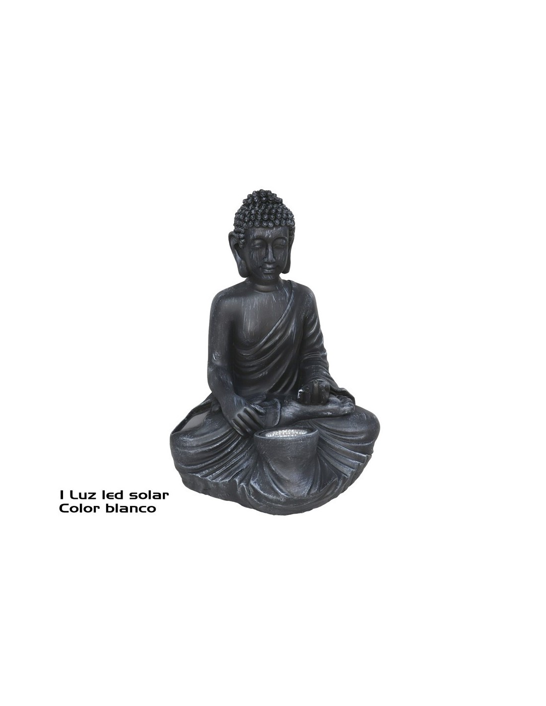 BUDA SENTADO C/LUZ SOLAR 1LED RESINA 27,5X21,5X21,