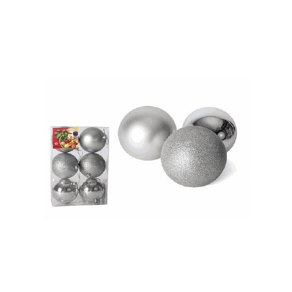 CAJA 6 BOLAS DE NAVIDAD PLATA 8CM 3 SURT