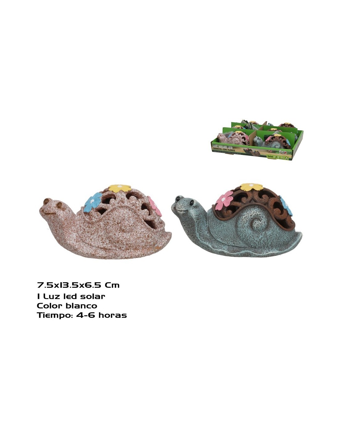 CARACOL C7FLORES 2 SURT LUZ SOLAR LED 13,5X7,5X6,5