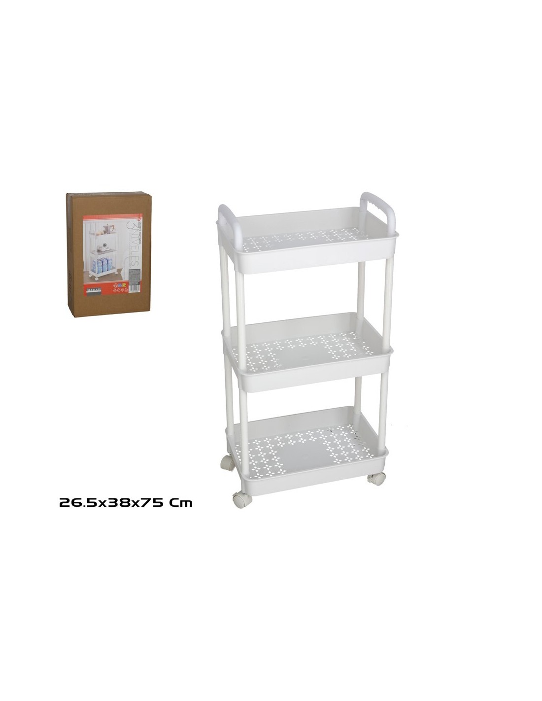 CARRITO MULTIUSOS 3 NIVELES BLANCO 38X26,5X75CM