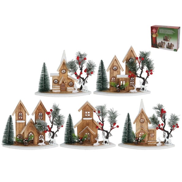 CASA MADERA C/25 LUCES 32,5X9X27,5CM 5STD