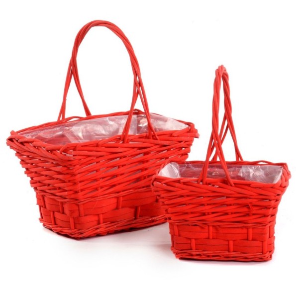 CESTA MIMBRE RECTANGULAR ROJA CON ASA S/2 S.18X12,5H11,55/25 B.24X17H15/30