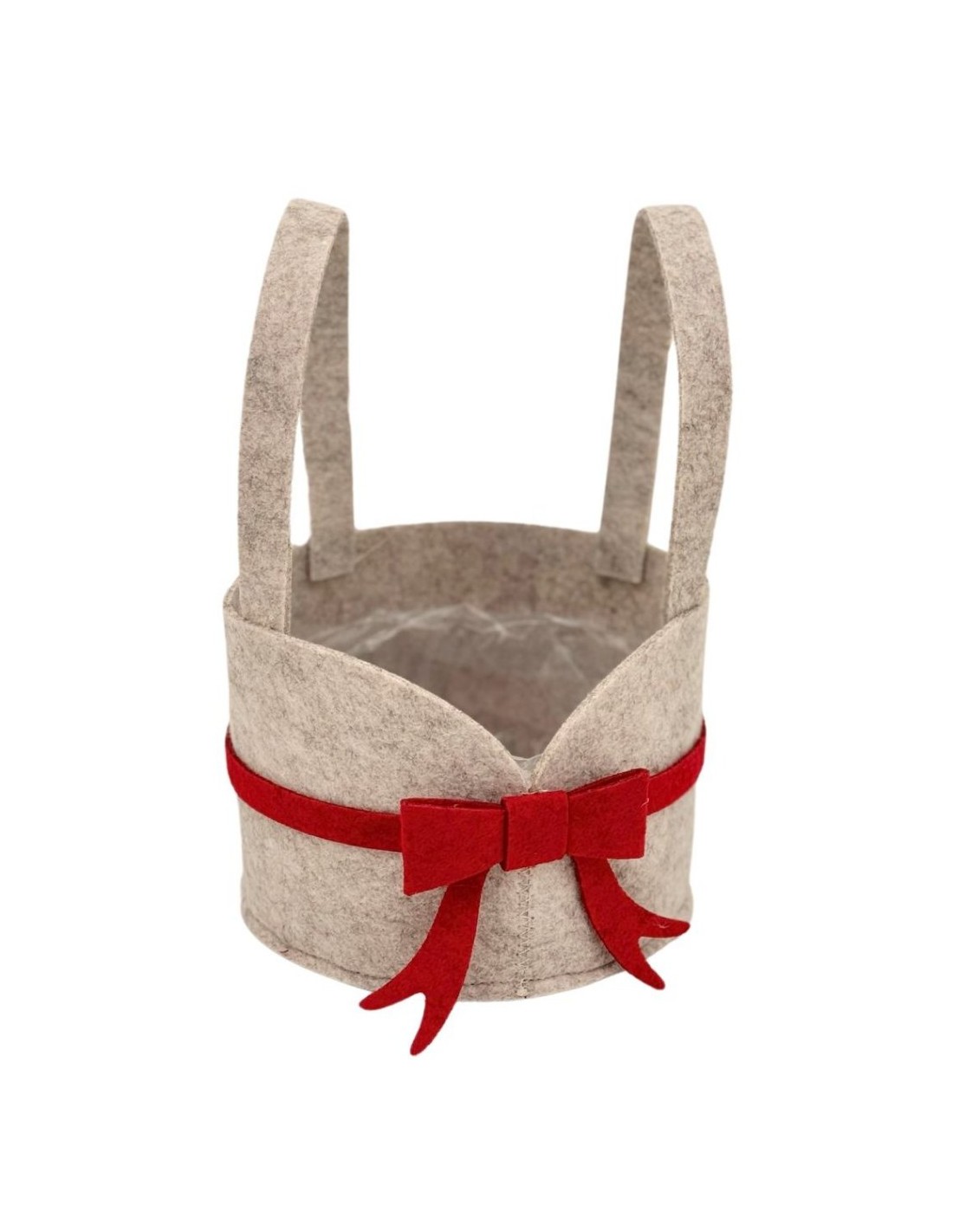 CESTA TELA FIELTRO GRIS LAZO ROJO CON DOS ASAS D.14H23