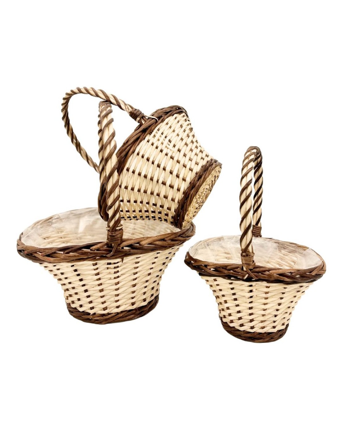 CESTAS DE MIMBRE OVALADAS NAT. S/3 BORDE OSCURO S.25X20H15/35 B.40X31H20/45