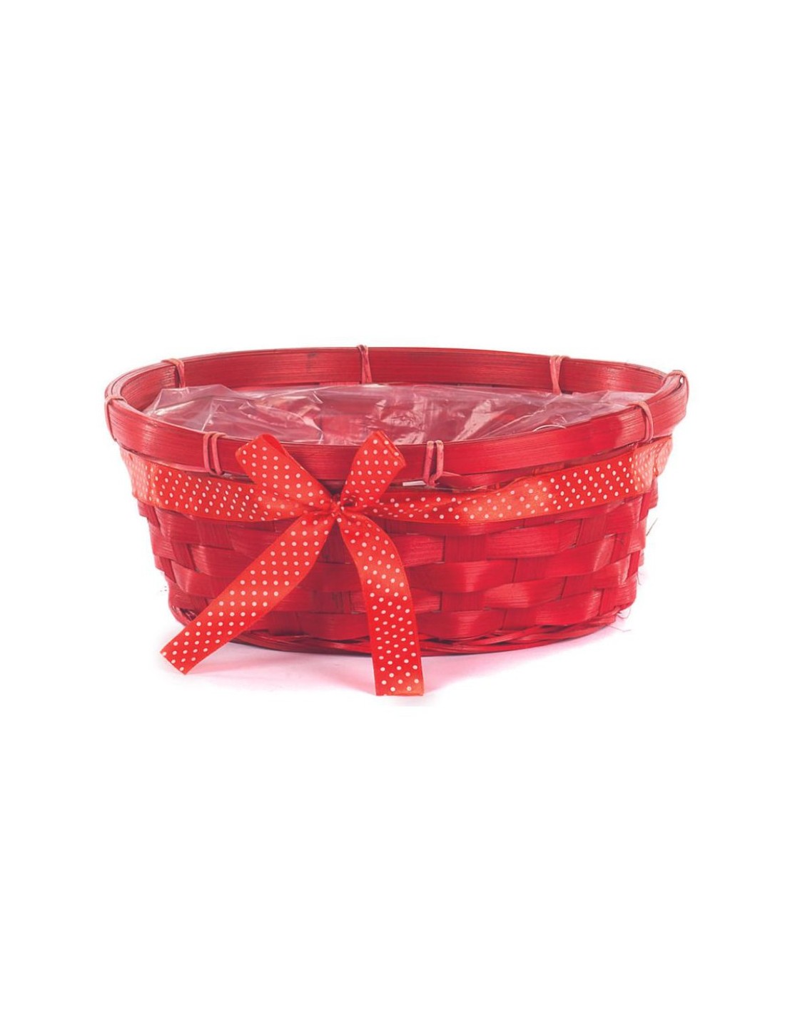 CESTO BAMBU OVALADO ROJO CON LAZO D.25H10