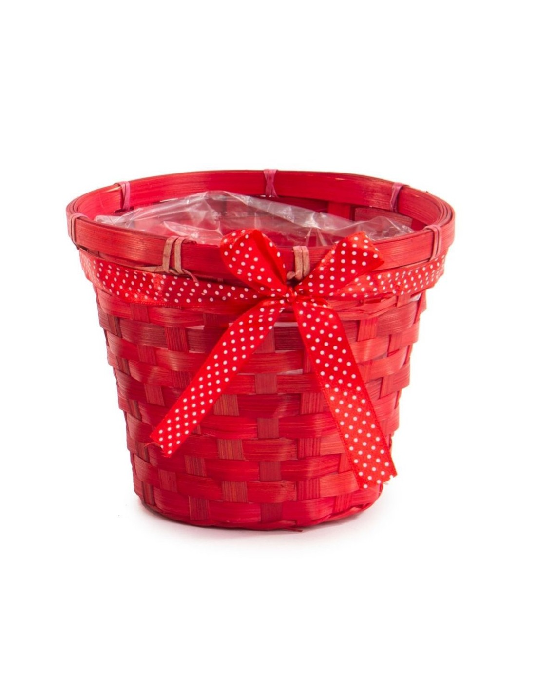 CESTO BAMBU ROJO CON LAZO D.18H15