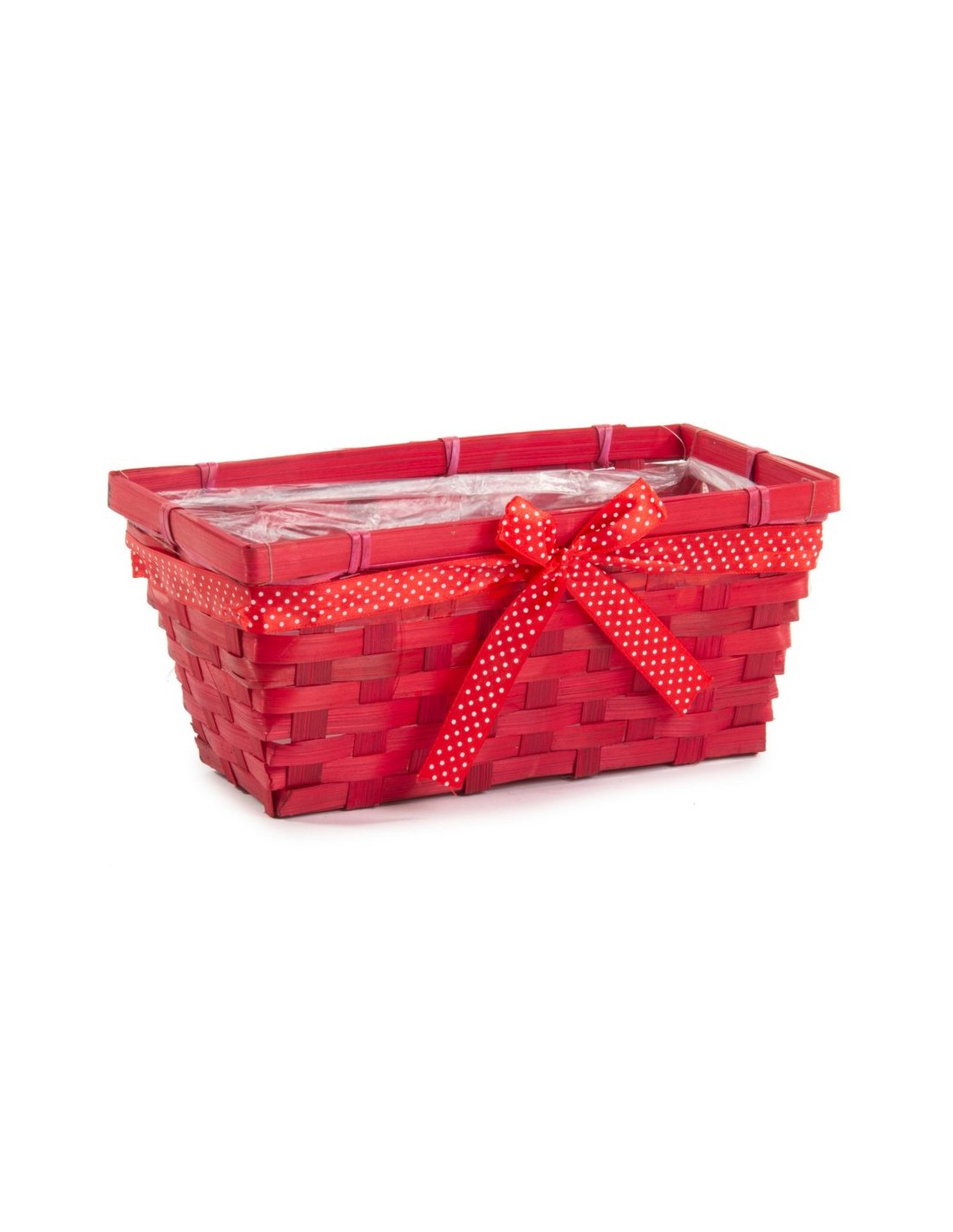 CESTO RECTANGULAR BAMBU ROJO CON LAZO D.26X13H12