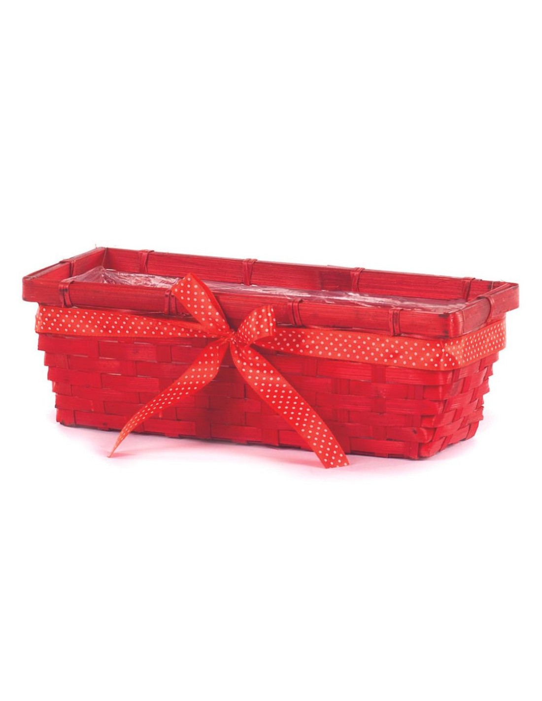 CESTO RECTANGULAR BAMBU ROJO CON LAZO D.30X12H10
