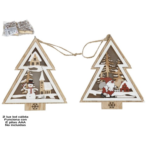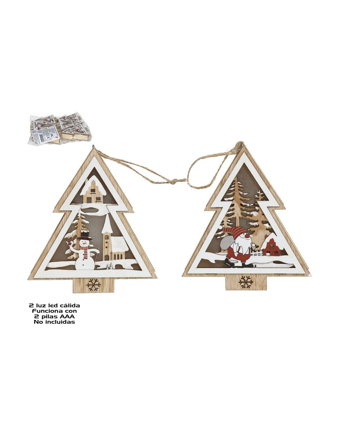 COLGANTE ARBOL MADERA 2LED 13CM 2STD