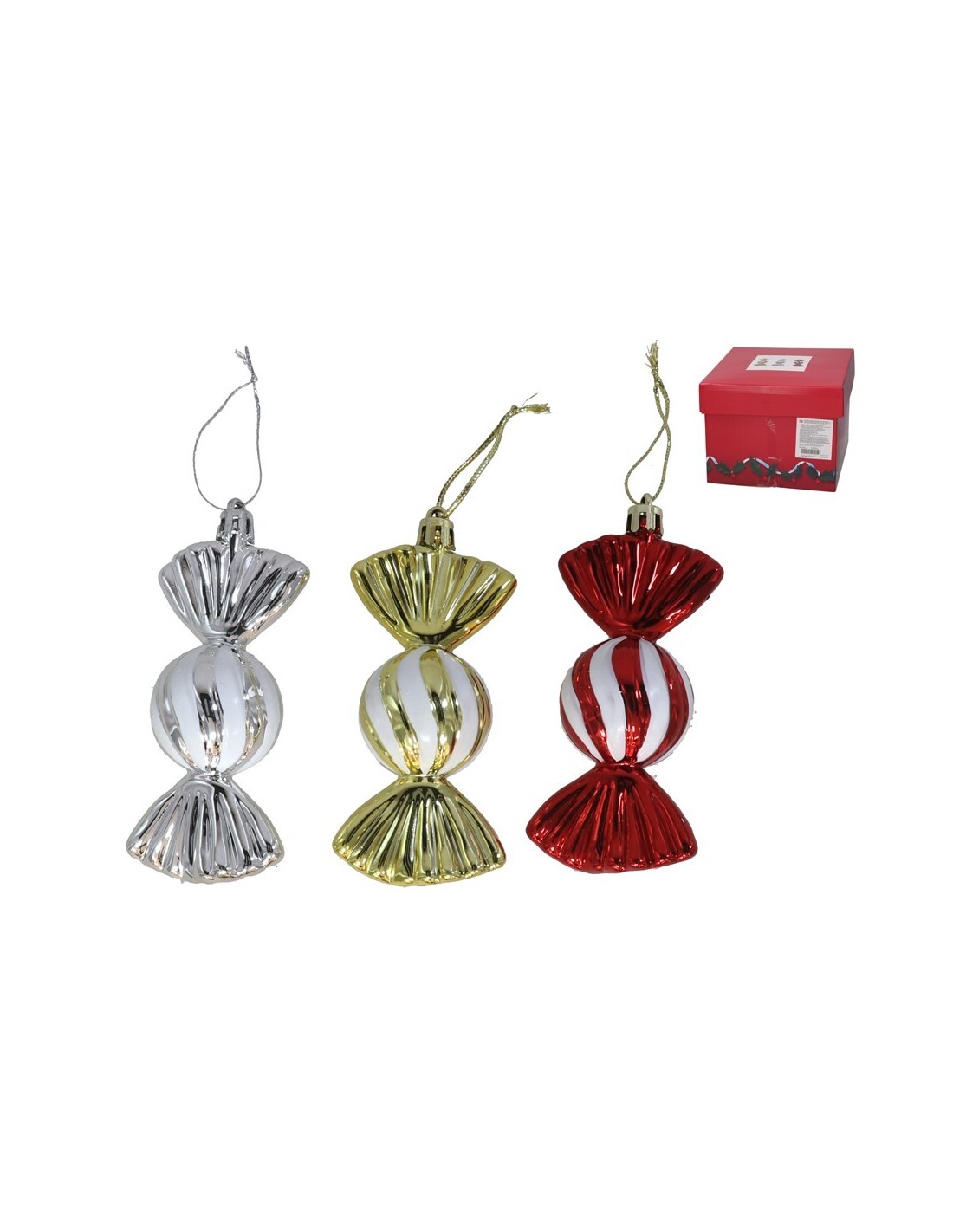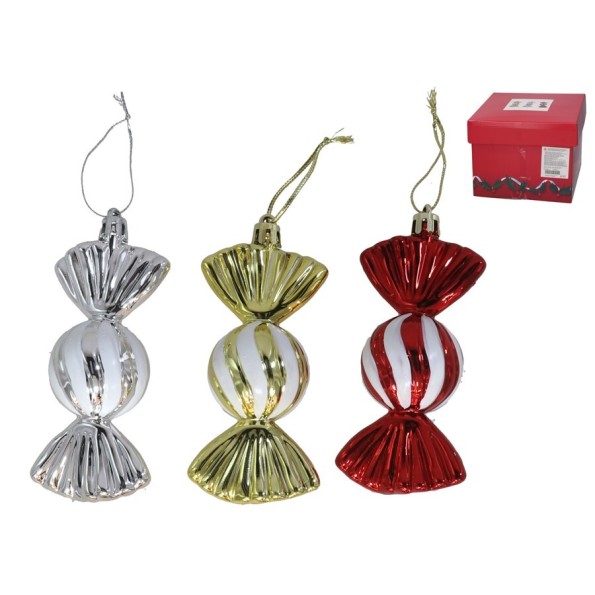 COLGANTE CARAMELO DECORADO 3 COL SRT 11X3,5X4 CM