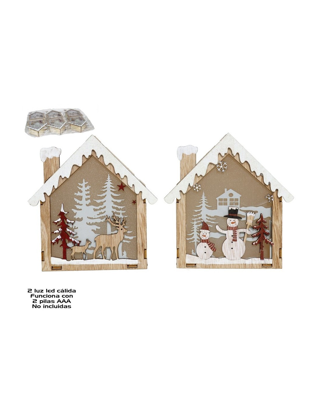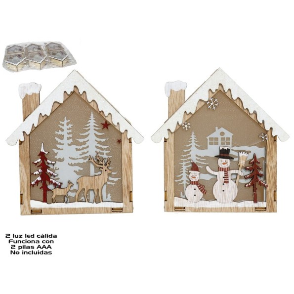 COLGANTE CASA MADERA 2LED 13CM 2STD