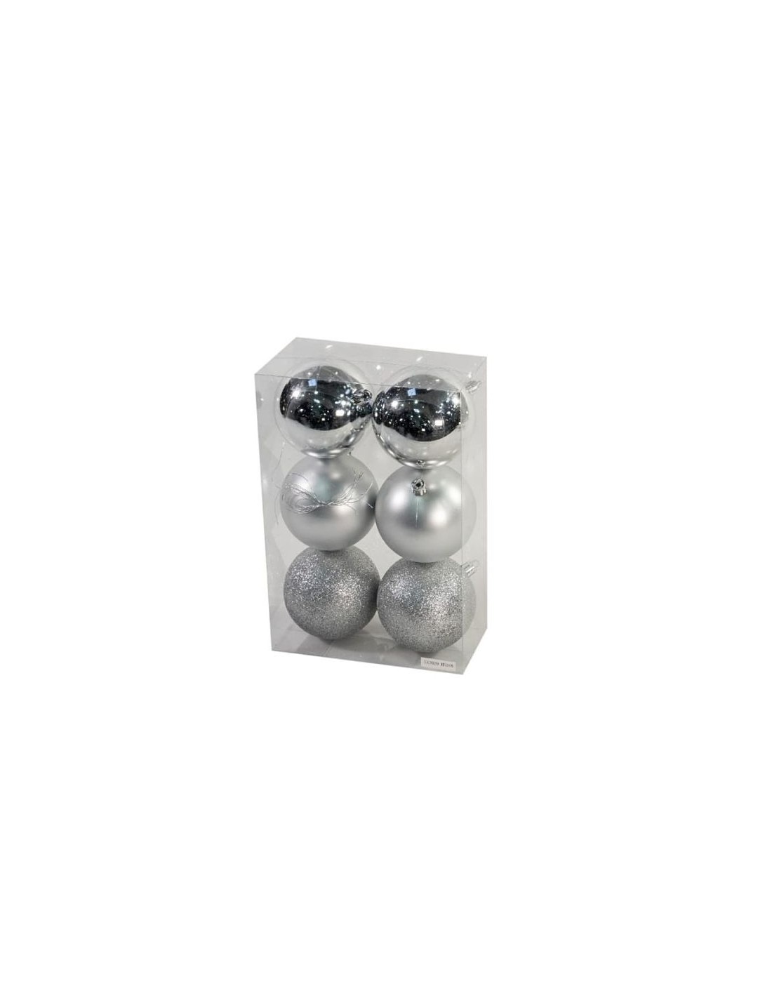 COLGANTE DE BOLAS 8CM PLATA MIXTO SET 6PCS