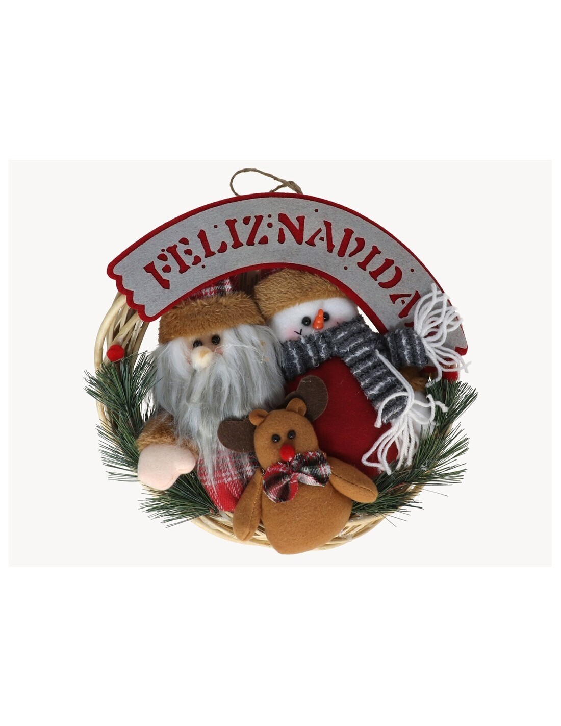 CORONA C/MUÑECOS+FELIZ NAVIDAD ROJO 30CM