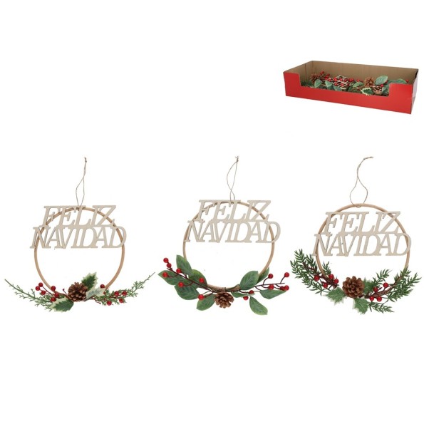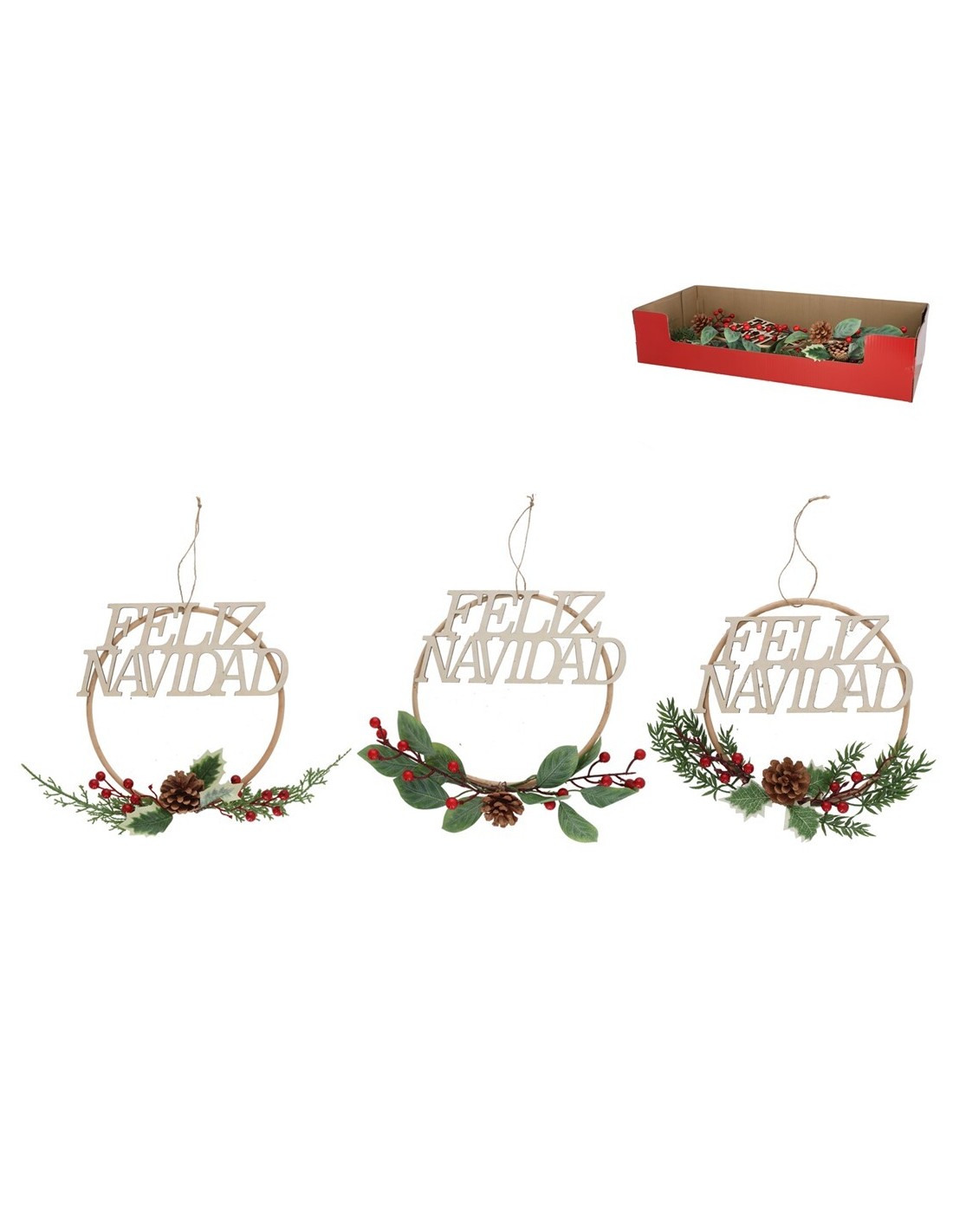 CORONA COLGANTE FELIZ NAVIDAD N1 35CM 3STD