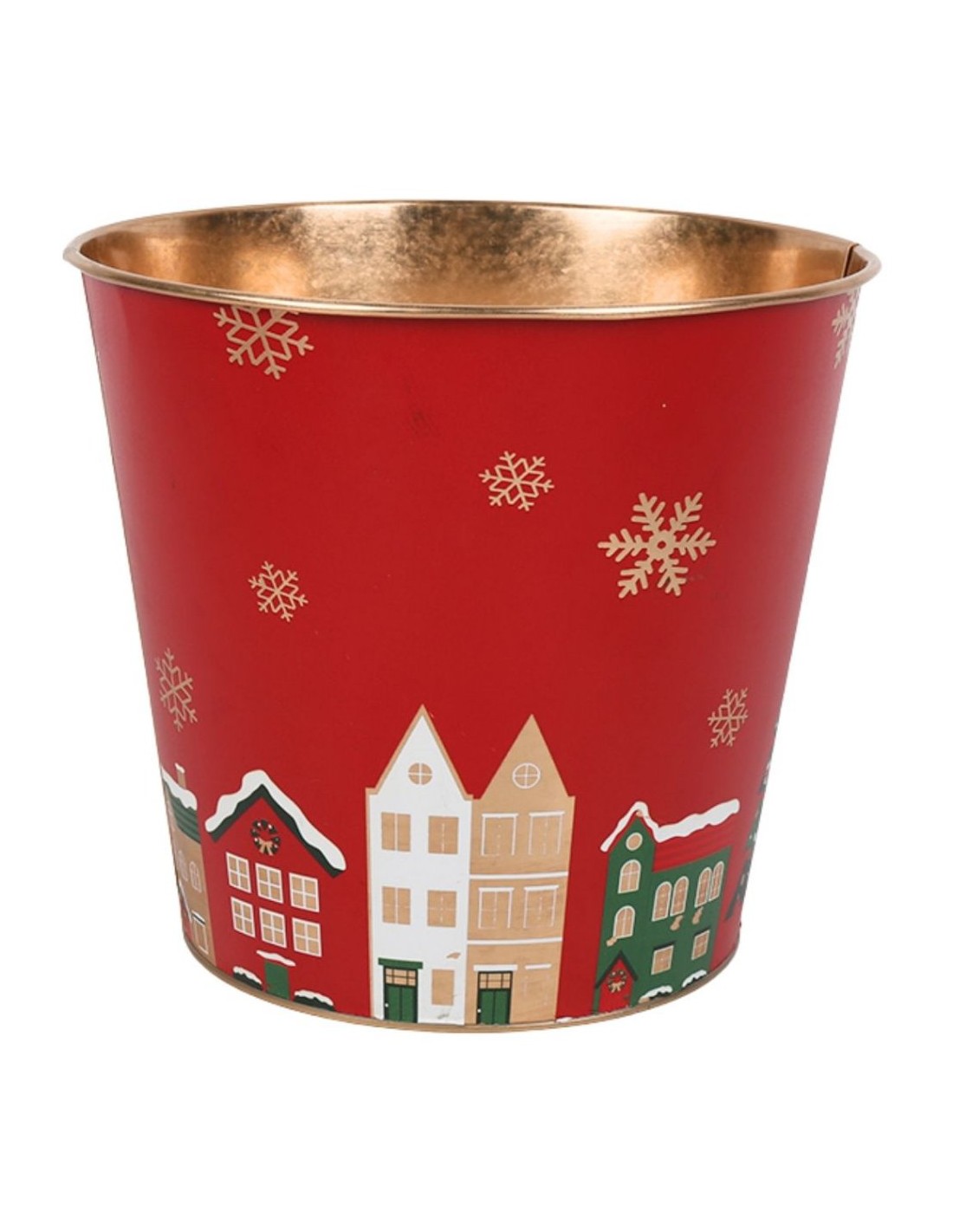 CUBO METAL ROJO PAISAJE NAVIDAD D.23H21