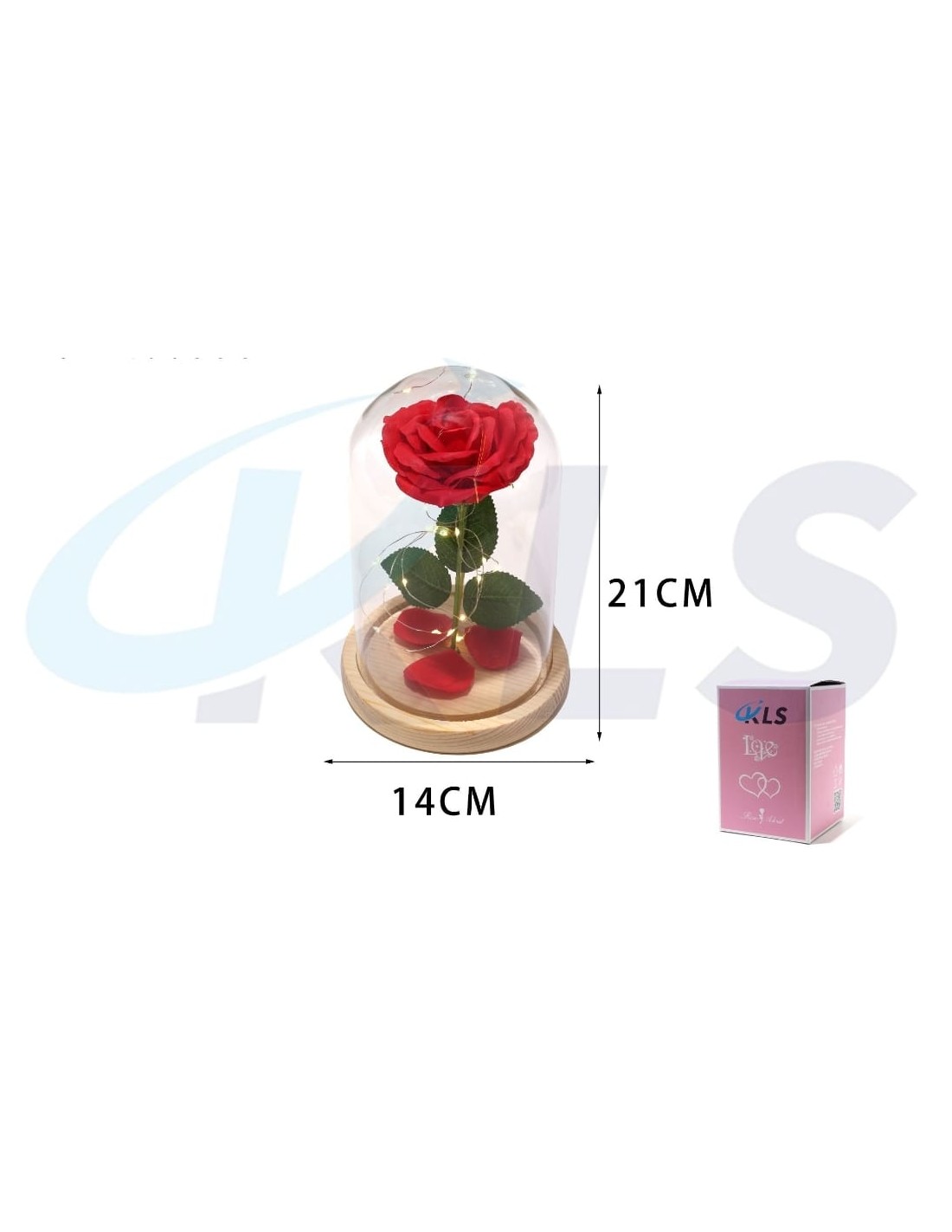 CÚPULA DE CRISTAL CON ROSA DECORATIVA-ROJO