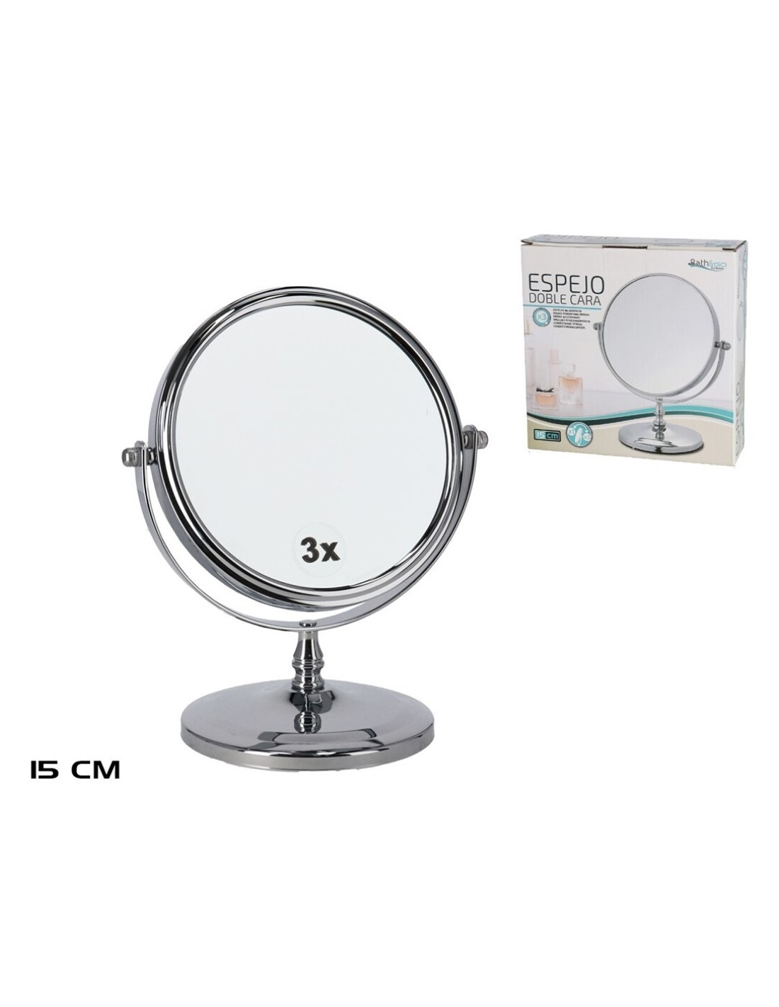 ESPEJO DOBLE CARA 15CM C/ AUMENTO 3X