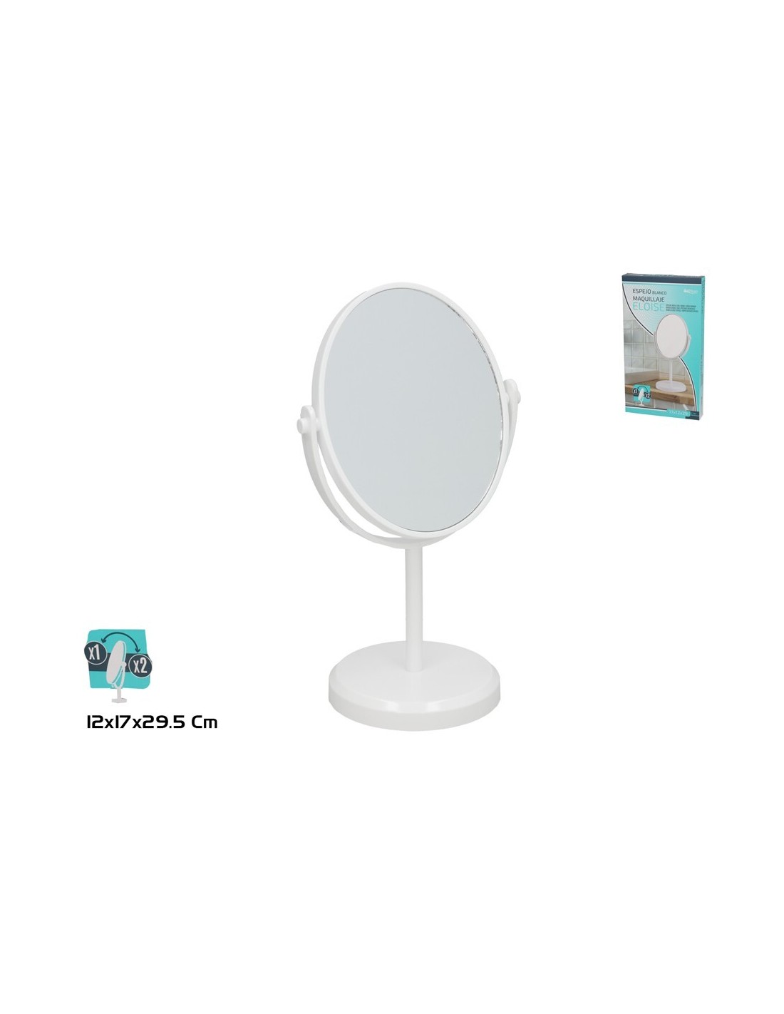 ESPEJO DOBLE CARA 1X/2X ELOISE 29,5X12X17CM BLANCO