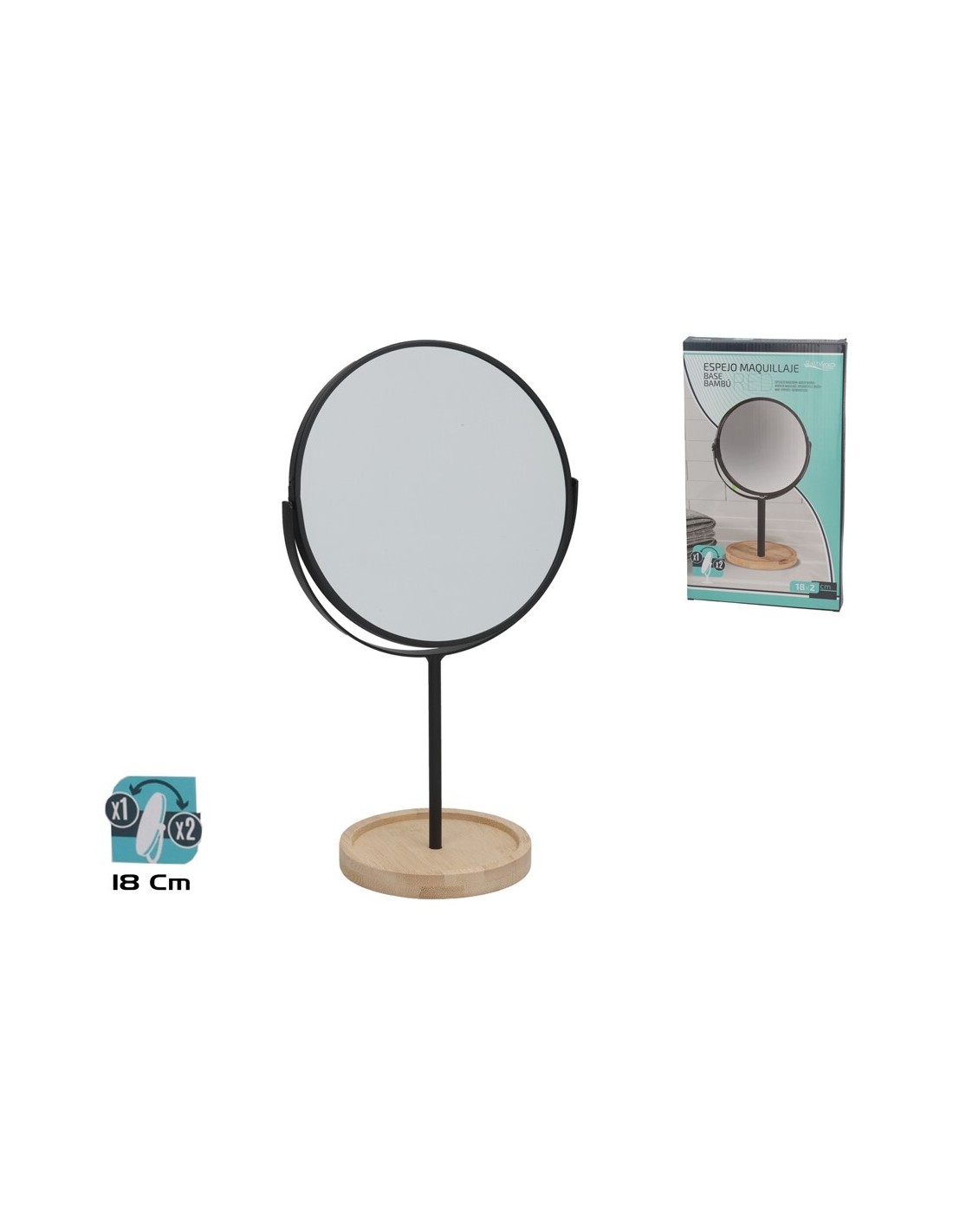 ESPEJO MAQUILLAJE 2X 18CM RED. BASE BAMBU