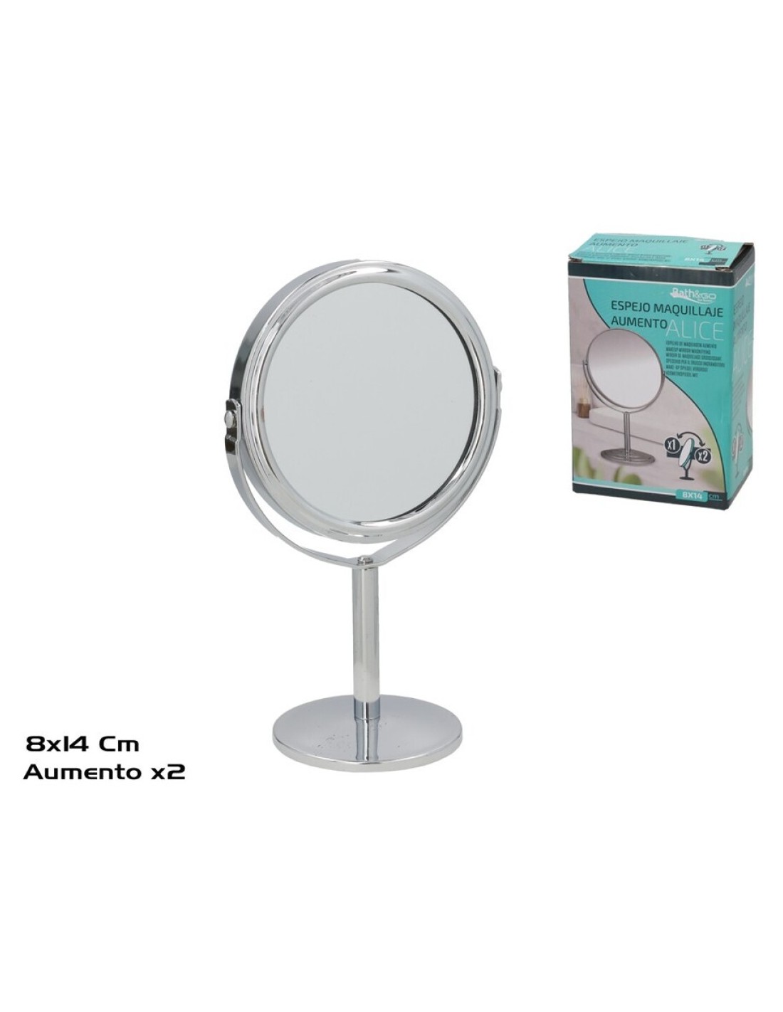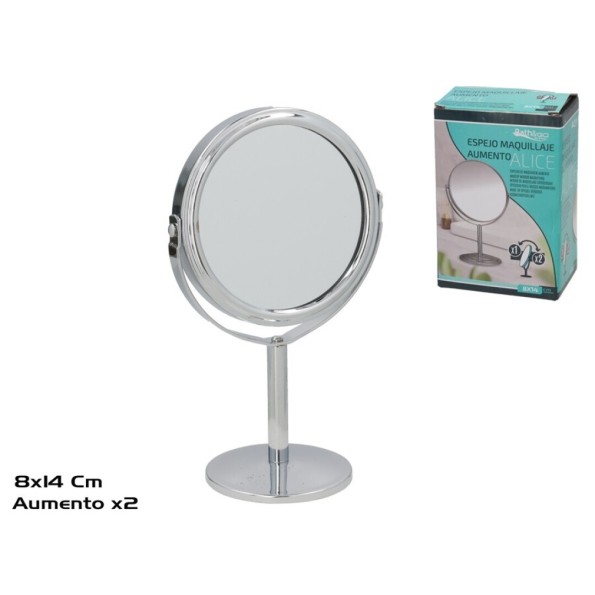 ESPEJO MAQUILLAJE AUMENTO X1 Y X2 ALICE 8.5X14CM