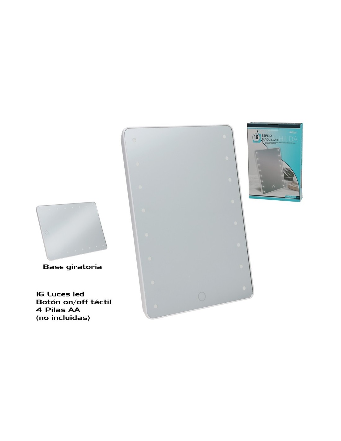 ESPEJO MAQUILLAJE C/16 LED HILDA 20.5X4.5X28CM