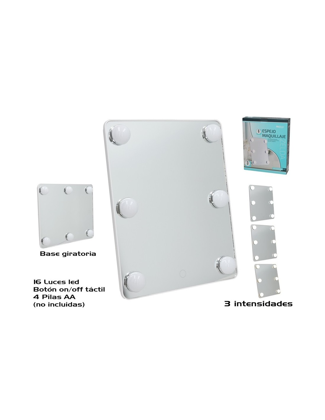 ESPEJO MAQUILLAJE C/6 LED 3 INT. ZELDA 30.5X25.5X5CM