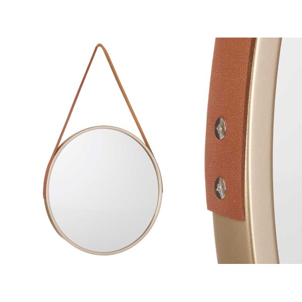 ESPEJO REDONDO ASA POLIPIEL CHAMPAGNE GRD