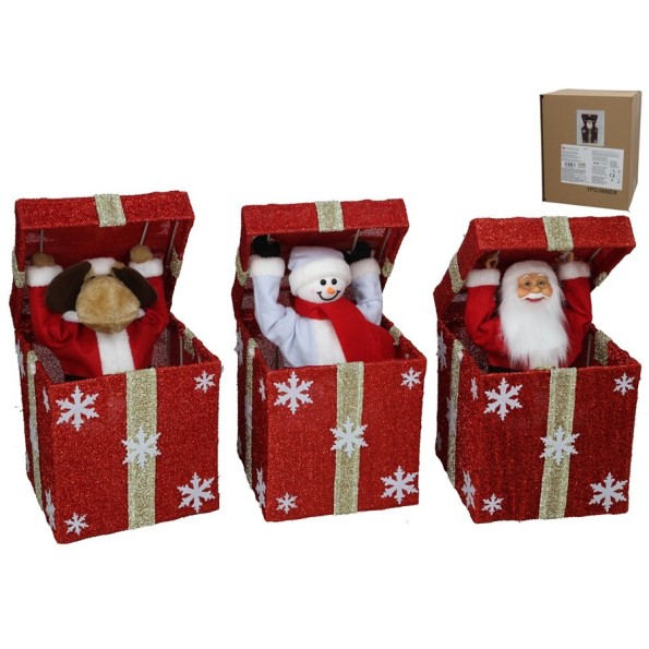 FIG. XMAS SALIENDO DE CAJA C/ LUZ 50CM