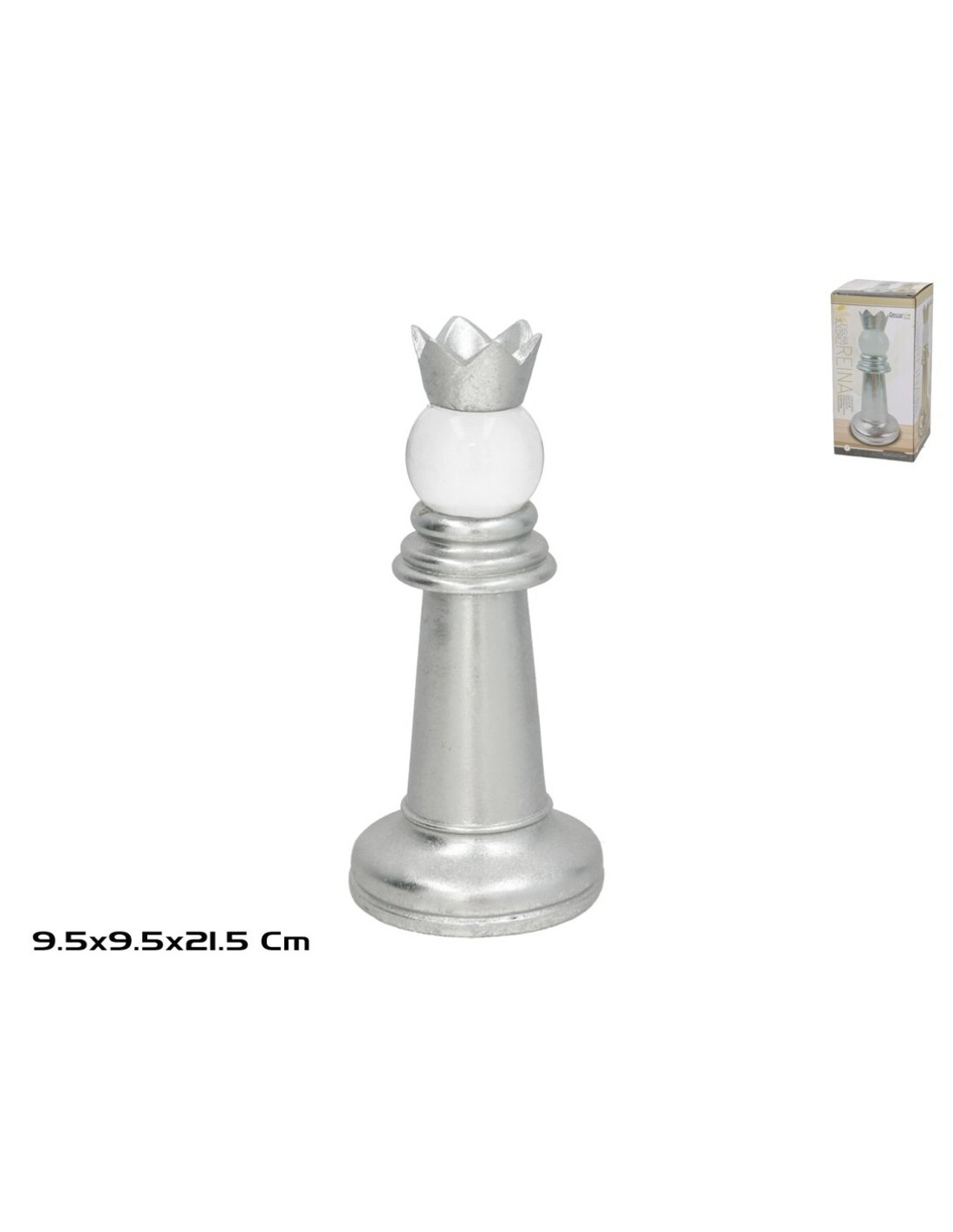 FIGURA AJEDREZ REINA CRISTAL 9.5X9.5X21.5 PLATA