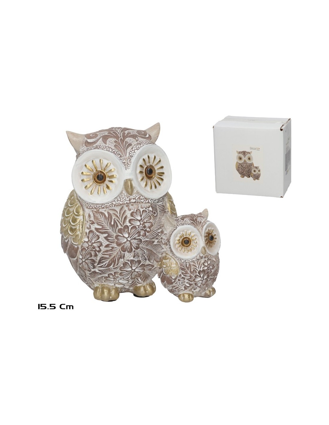 FIGURA BUHO MAMA Y BEBE KINARI 14,5X9X15,5 CM