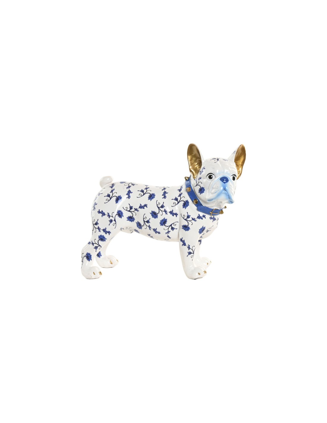 FIGURA RESINA 24X11.5X21.5 BULLDOG DORADO AZUL