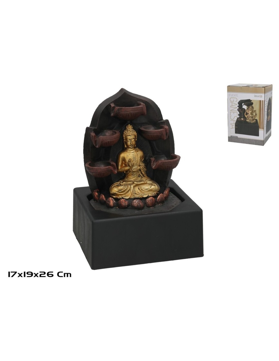 FUENTE BUDA VIPASSI C/LED CALIDA 19X17X26CM