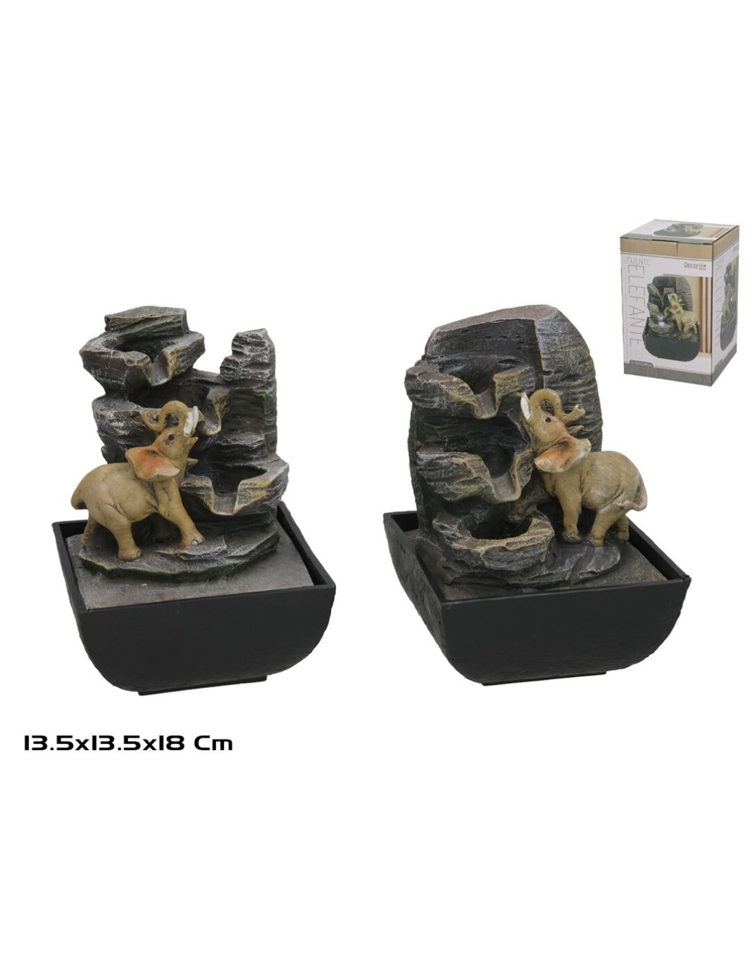 FUENTE ELEFANTE SUERTE C/LED FRIA 13.5X13.5X18CM 2 SURT