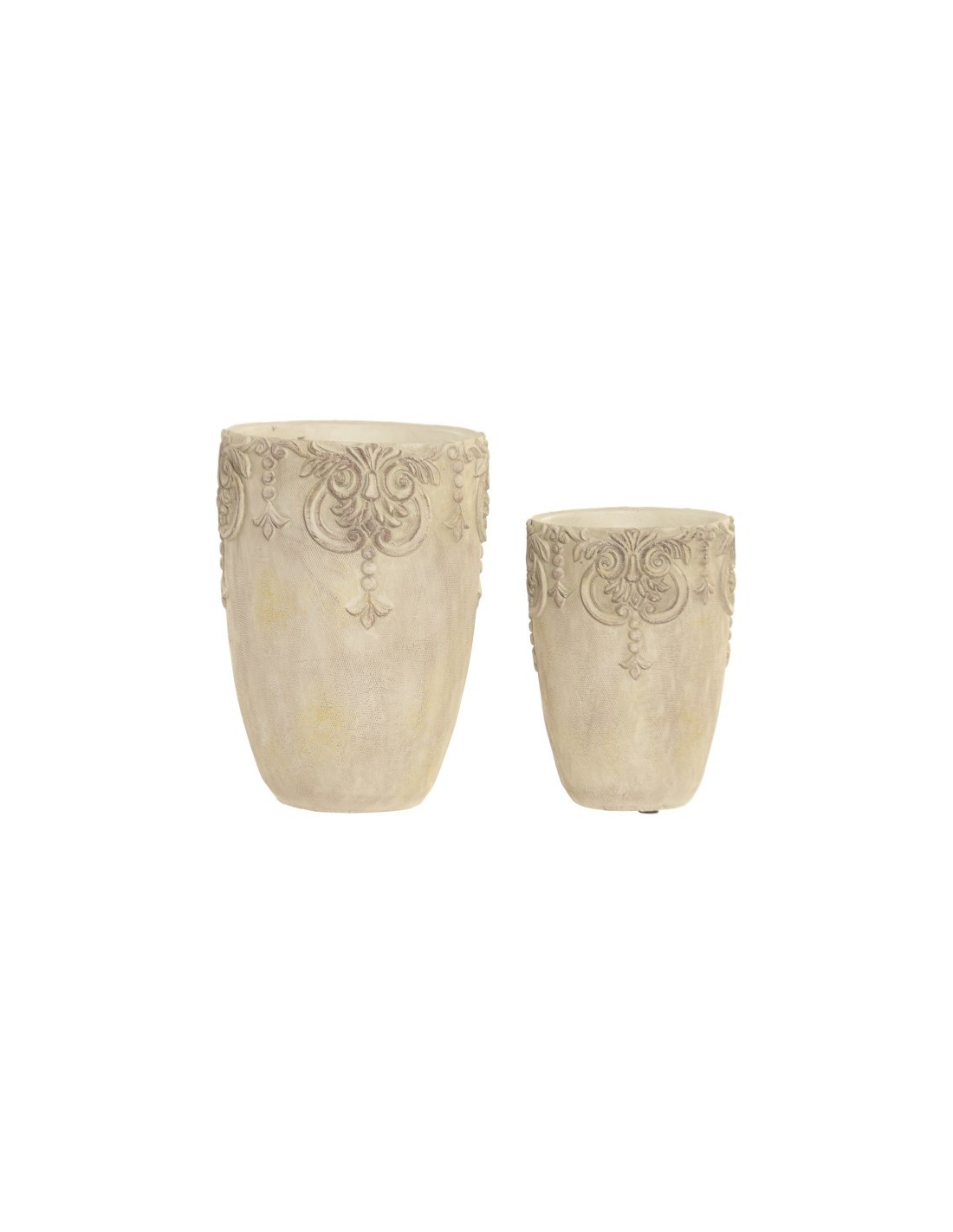 JARRON SET 2 CEMENTO 16X16X23 BARROCO DESGASTADO