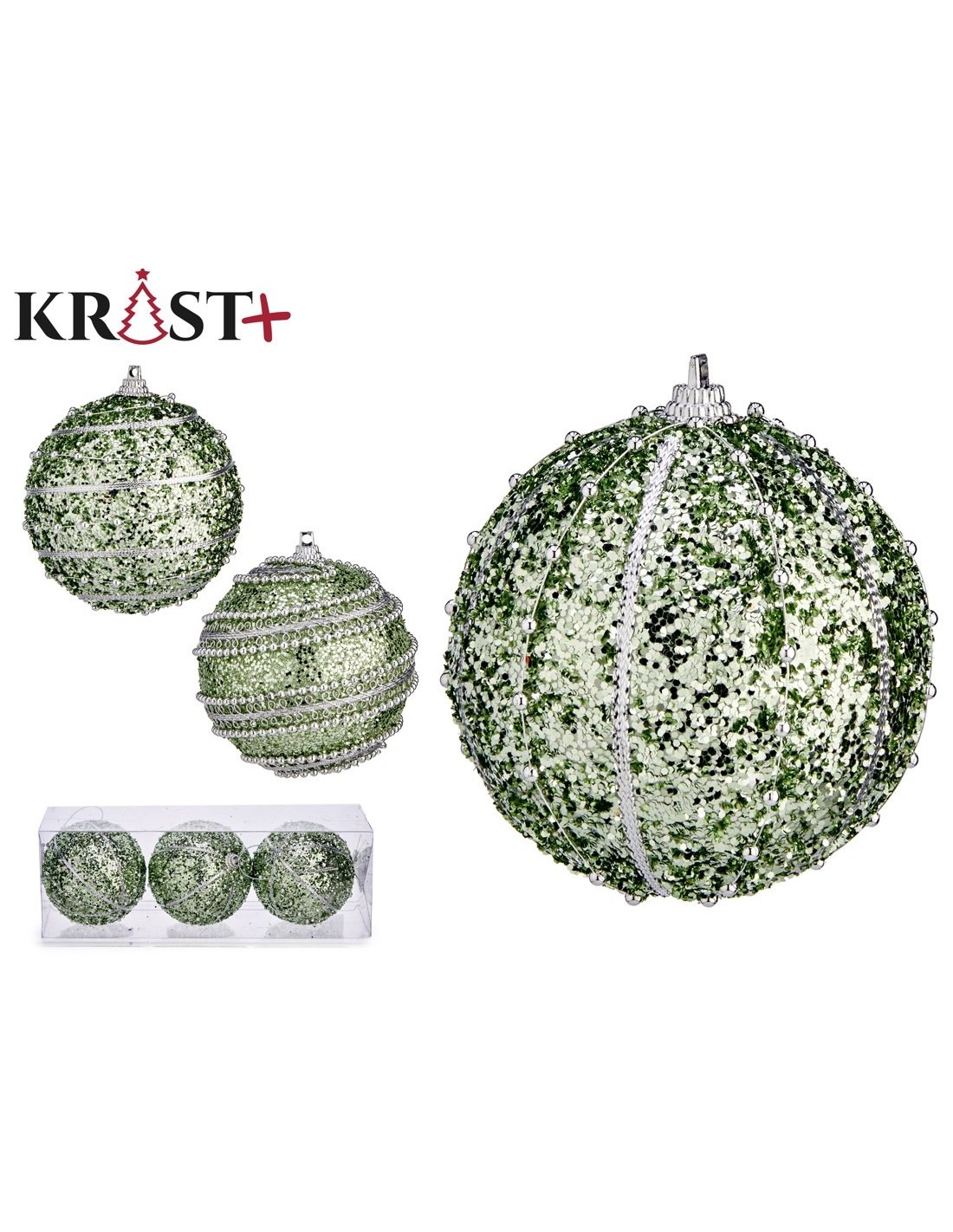 JGO 3 BOLAS NAVIDAD 8CM VERDE RELIEVE SURT 4