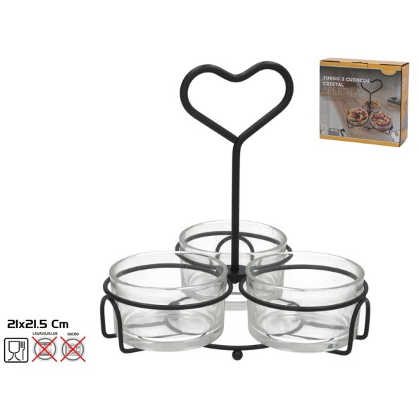 JUEGO 3 CUENCOS CRISTAL APERITIVO 21X21.5CM