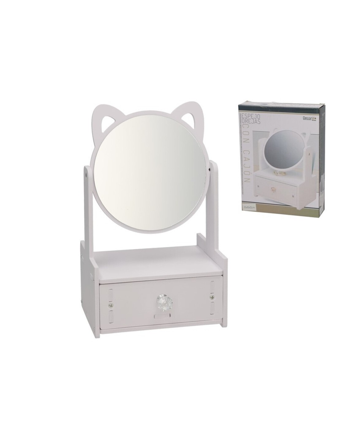 KIT MONTABLE ESPEJO OREJAS CON CAJON 12.5x16.5x28 cm