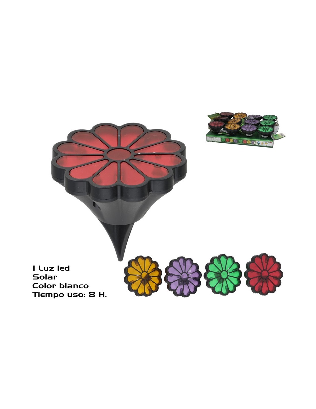 LAMPARA JARDIN + PANEL SOLAR LED FLOR COLOR 8H 9X9