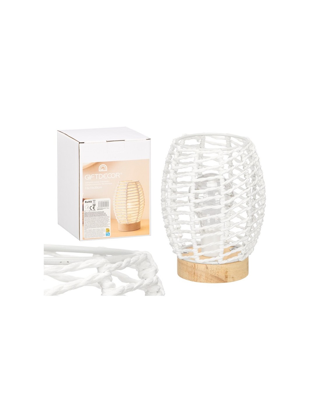 LAMPARA SOBREMESA OVALADA CUERDA BLANCA