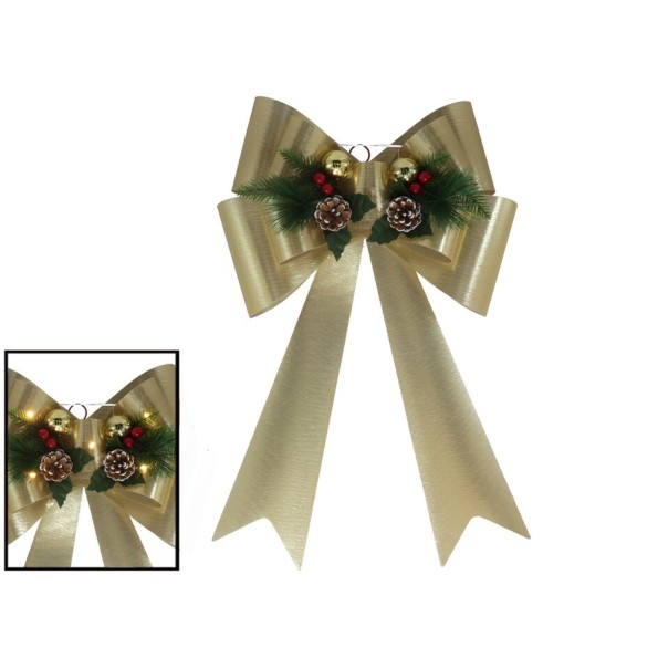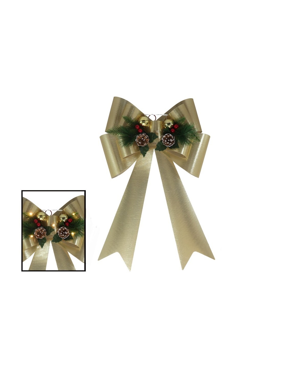 LAZO XMAS 5 LED 41X66CM CON PIÑAS DORADO BRILLO