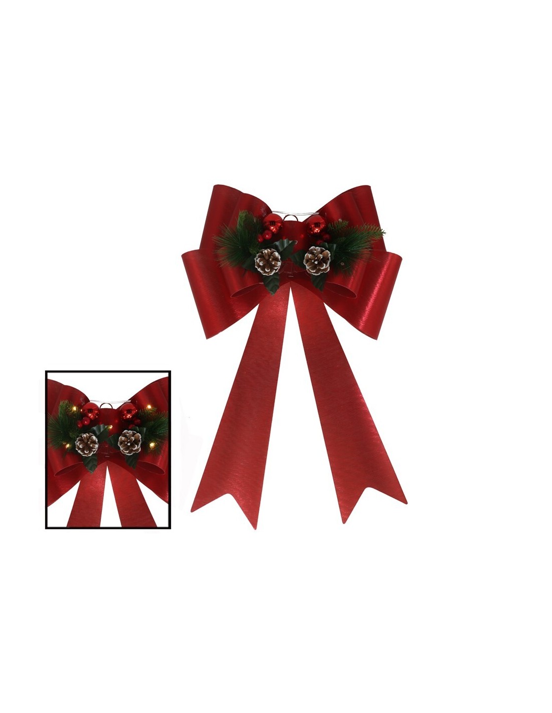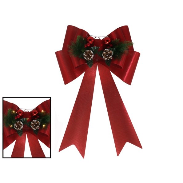 LAZO XMAS 5 LED 41X66CM CON PIÑAS ROJO BRILLO