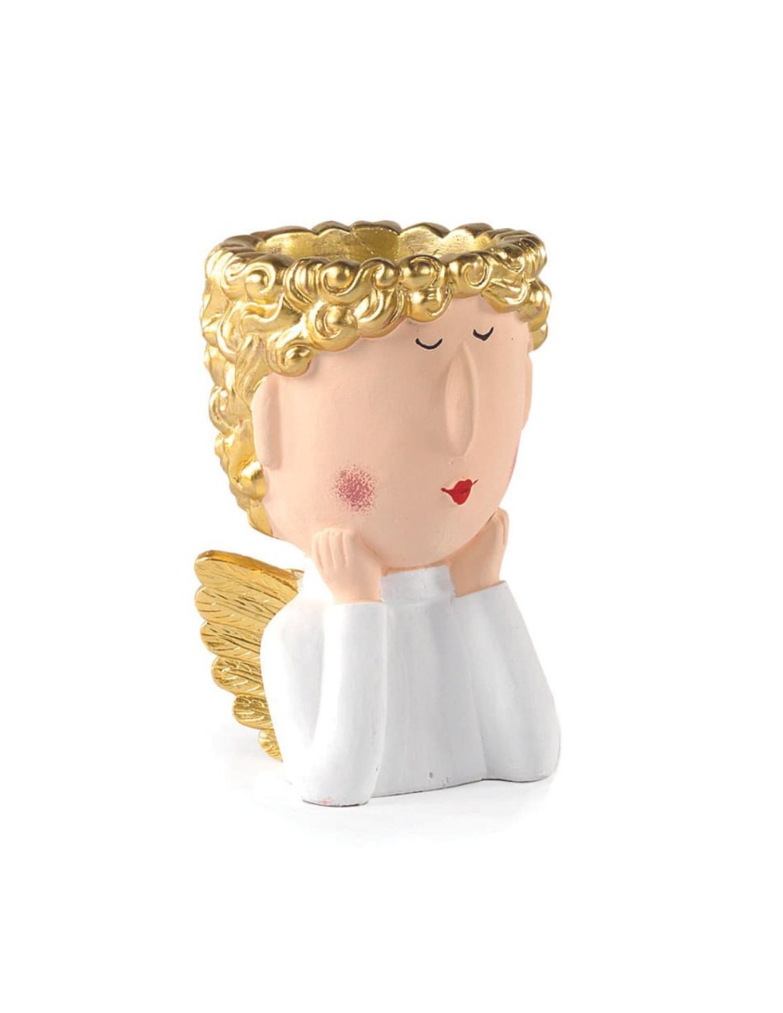 MACETERO ANGEL CEMENTO BLANCO DORADO 13X12.5 H20