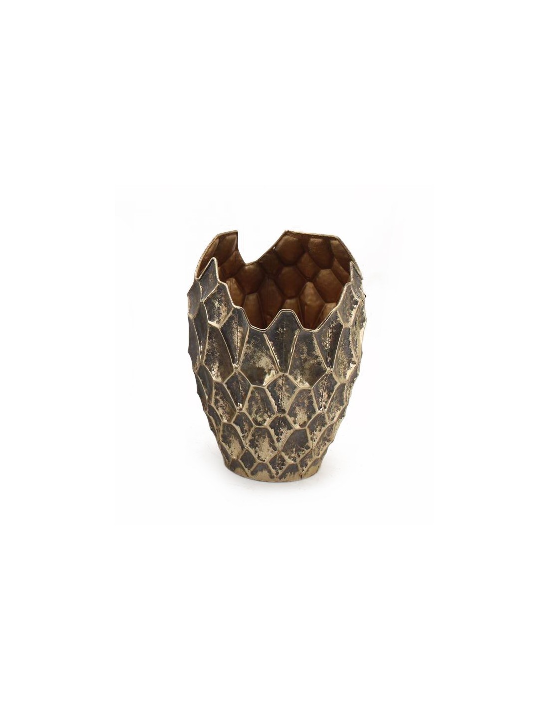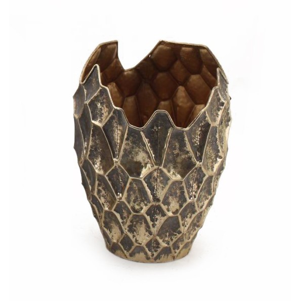MACETERO METÁLICO ALTO BORDE QUEBRADO MARRÓN ORO D32,5 H43