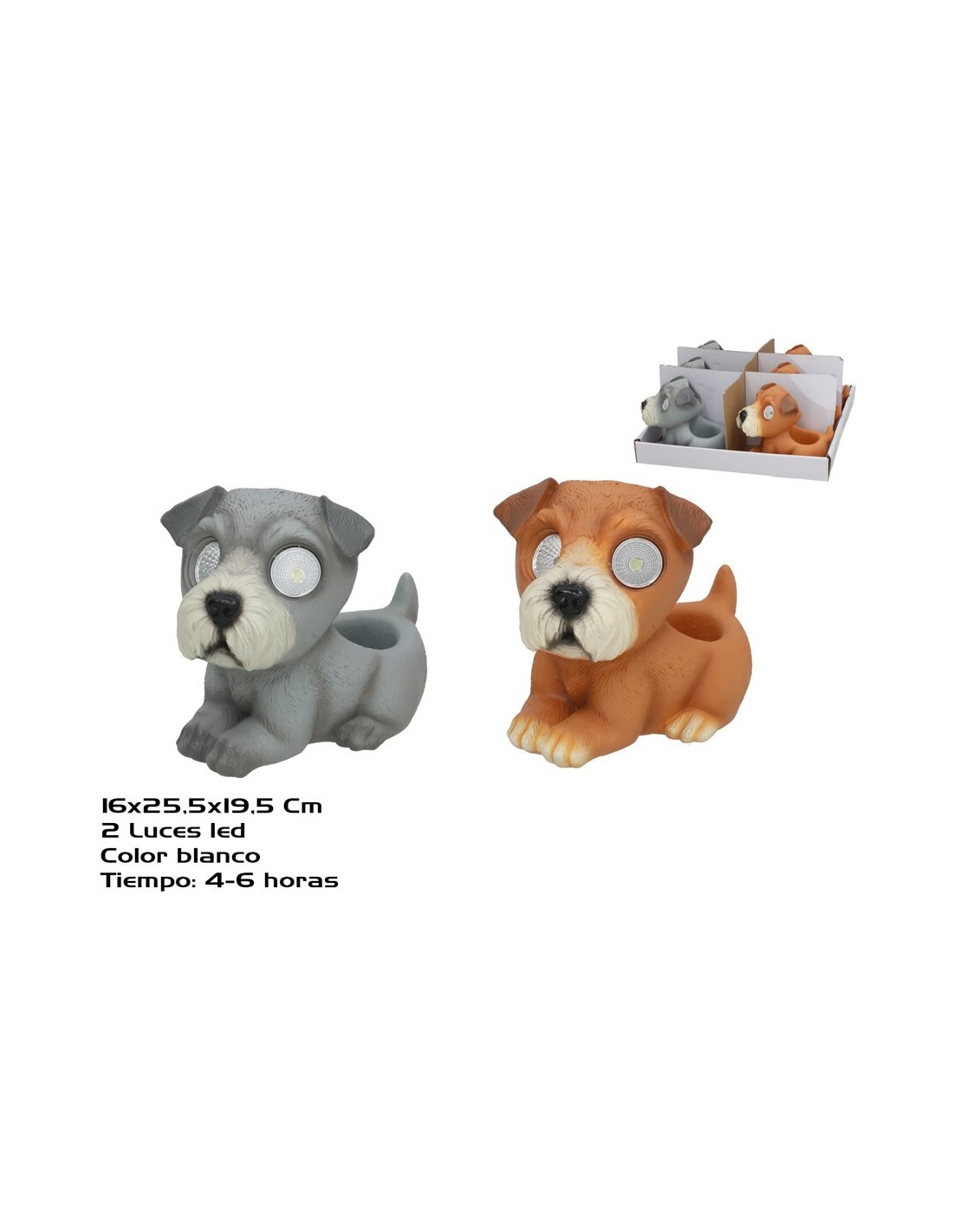 MACETERO PERRO 2 SURT 2 LUZ SOLAR LED 25.5x16x19.5